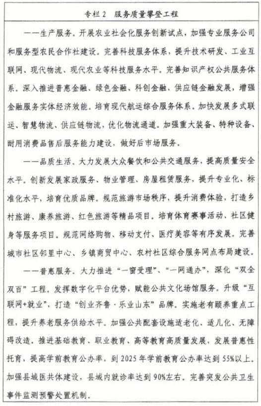 (十)推動(dòng)服務(wù)業(yè)擴(kuò)容提質(zhì)。深化服務(wù)業(yè)供給側(cè)結(jié)構(gòu)性改革,支持傳統(tǒng)服務(wù)行業(yè)改造升級(jí),大力培育服務(wù)業(yè)新產(chǎn)業(yè)、新業(yè)態(tài)、新模式,加快發(fā)展現(xiàn)代服務(wù)業(yè),著力提高服務(wù)效率和服務(wù)品質(zhì),持續(xù)推進(jìn)服務(wù)領(lǐng)域改革開放,努力構(gòu)建優(yōu)效、布局優(yōu)化、競(jìng)爭(zhēng)力強(qiáng)的服務(wù)產(chǎn)業(yè)新體系。以創(chuàng)新、標(biāo)準(zhǔn)、品牌、滿意度監(jiān)測(cè)等理念方法引領(lǐng)服務(wù)質(zhì)量提升發(fā)展,助力產(chǎn)業(yè)鏈向價(jià)值鏈高端延伸。開展優(yōu)服務(wù)標(biāo)準(zhǔn)建設(shè)行動(dòng),健全服務(wù)業(yè)質(zhì)量標(biāo)準(zhǔn)體系,實(shí)施服務(wù)業(yè)標(biāo)準(zhǔn)化試點(diǎn)示范,推行優(yōu)服務(wù)承諾、認(rèn)證、標(biāo)識(shí)制度,培育一批具有競(jìng)爭(zhēng)力的優(yōu)服務(wù)市場(chǎng)主體和知名品牌。在物流、商務(wù)咨詢、檢驗(yàn)檢測(cè)等生產(chǎn)性服務(wù)領(lǐng)域,開展質(zhì)量標(biāo)桿企業(yè)創(chuàng)建行動(dòng);在大眾餐飲、家政服務(wù)、物業(yè)管理、房屋租賃、旅游等生活性服務(wù)領(lǐng)域,開展服務(wù)質(zhì)量滿意度提升行動(dòng);圍繞城鄉(xiāng)居民優(yōu)便利生活需要,合理布局便民服務(wù)設(shè)施,持續(xù)增強(qiáng)城鄉(xiāng)教育、養(yǎng)老服務(wù)、基本醫(yī)療、文化體育、口岸公共衛(wèi)生等領(lǐng)域公共服務(wù)能力,加快數(shù)字政府、數(shù)字社會(huì)、智慧城市、數(shù)字鄉(xiāng)村建設(shè),構(gòu)建優(yōu)均衡的公共服務(wù)體系。加大服務(wù)質(zhì)量監(jiān)管力度,持續(xù)開展公共服務(wù)質(zhì)量監(jiān)測(cè),探索開展重點(diǎn)服務(wù)行業(yè)質(zhì)量監(jiān)測(cè)。