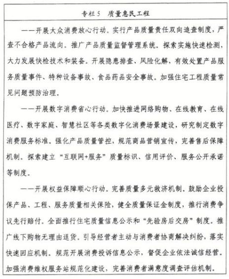(八)推進(jìn)消費(fèi)品工業(yè)品質(zhì)量提升。深入實(shí)施消費(fèi)品增品種、提品質(zhì)、創(chuàng)品牌專項(xiàng)行動(dòng),以創(chuàng)新供給引領(lǐng)消費(fèi)需求,加快傳統(tǒng)消費(fèi)品迭代創(chuàng)新,擴(kuò)大智能家電、智能終端等新型消費(fèi)品供給,增加老年人、兒童、殘疾人等特殊群體的消費(fèi)品供給。實(shí)施質(zhì)量可靠性筑基工程,大幅提升智能制造水平和質(zhì)量控制能力,持續(xù)提升產(chǎn)品穩(wěn)定性、可靠性、一致性。加快傳統(tǒng)裝備智能化改造,大力發(fā)展高質(zhì)量通用智能裝備。鼓勵(lì)企業(yè)通過個(gè)性化設(shè)計(jì)、柔性化生產(chǎn)、智能化服務(wù)滿足用戶需求。推進(jìn)消費(fèi)品內(nèi)外貿(mào)同線同標(biāo)同質(zhì)。